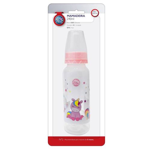 Este Kit Mamadeira Bico 240Ml + Chupeta De Silicone - Rosa foi desenvolvida pensando no máximo conforto e proteção para a pele sensível do bebê. Desenvolvida com atenção à todas as recomendações dos profissionais de saúde para garantir um produto de qualidade, que atenda às necessidades dos pais e proporcionando conforto aos bebês. ________________ Mais informações sobre o produto: Kit Mamadeira Bico 240ml + Chupeta de Silicone Fase 1 com Capuz Praticidade é uma ferramenta essencial para o dia a dia de toda mãe. Pensando nisso,a Pais e Filhos trouxe o kit mamadeira mais chupeta, para completar a rotina e deixar mamães e bebês ainda mais felizes. Vem com1 mamadeira e 1 chupeta, com bico em silicone livre de BPA e é sistema anti . Pode ir no micro-ondas e refrigerador, é aprovado pelo INMETRO. Livre de BPA O Kit Contém: 1 mamadeira rosa com 1 chupeta rosa OU 1 mamadeira azul com 1 chupeta azul Sobre a mamadeira: - Referencia: 0054 - Recomedações: 0 a 6 meses Capacidade: 240ml Bico Assimétrico de silicone EAN : 7896647000489 Tamanho: 20cm x 5cm x 55cm AXCXL Sobre a chupeta: - Bico Assimétrico - Bico 100% Silicone - Livre de BPA - Tamanho 1 - Recomedações: 0 a 6 meses EAN:7896647000595 Referencia: 1649 Tamanho: 20cm x 5cm x 55cm AXCXL Obs: Os modelos das garrafas são Aviso importante: este produto somente deve ser na alimentação de crianças menores de 1 um ano de idade com indicação expressa de médico ou nutricionista. O aleitamento materno evita infecções e alergias e fortalece o vínculo mãe-filho. Marca: Não Informado