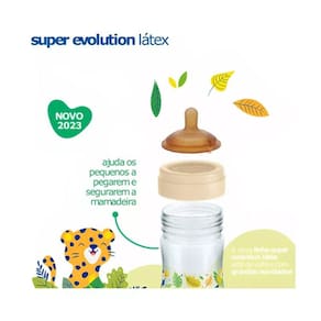 A Mamadeira Evolution de 150 ml e 300ml vai facilitar a vida da mamãe e do bebê. É prática, fácil de pegar, macia e flexível. Possui bico feito de látex de origem natural, tampa antivazamento com fechamento eficaz evitando vazamentos durante o transporte. Possui uma base 15% maior para apoio dos lábios de forma agradável durante a alimentação. Além disso, o gargalo tem abertura larga, que facilita a limpeza e o preparo dos alimentos.