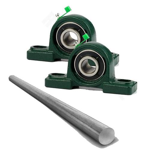Esse kit acompanha 02 mancais P204, 02 rolamentos UC204 e 01 eixo trefilado redondo em aço 1045 com 20mm de diâmetro e 75cm de comprimento.