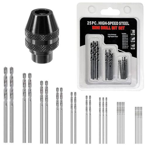 Kit Mandril Mandril de Aperto Rápido Rosca M8 x 0.75 Longa com 25 brocas para Micro Retíficas Dremax - Marca: Dremax - Referência: MD017 - Para micro Retíficas com Rosca M8 x 0.75 - Mandril ajustável de 0,8mm 1/32 Pol. a 3,2mm 1/8 de polegada - Acompanha 25 brocas para micro retíficas, sendo: :: 5 Brocas HSS 0.5mm :: 5 Brocas HSS 0.6mm :: 3 Brocas HSS 1.0mm :: 2 Brocas HSS 1.2mm :: 2 Brocas HSS 1.5mm :: 2 Brocas HSS 1.8mm :: 2 Brocas HSS 2.0mm :: 2 Brocas HSS 2.35mm :: 2 Brocas HSS 3.0mm - Compatível com a grande maioria das micro retíficas importadas do mercado como Charbs, Dremax, Hammer, Wesco, Mondial, Titanium, Gamma, Einhell, Sagyma, Nove54, Vonder, AWT, Fort, Dexter, Black Decker, Mallory, Western, entre outras - Diâmetro aproximado da rosca das micro retíficas compatíveis: 7.6 a 8mm - Dimensões detalhadas: verifique nas fotos do produto - Resistente e durável - : 90 dias contra defeitos de fabricação A DREMAX é a primeira e única marca brasileira dedicada exclusivamente às micro retíficas, acessórios e acoplamentos para esta indispensável ferramenta. Seja para trabalhos de precisão, artesanato, modelagem ou reparos, a DREMAX tem o produto certo para você.