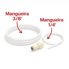 Transforme sua instalação de água em um processo simples e seguro com o nosso Kit Mangueira 3/8 1,5 m + Mangueira 1/4 1,5 m com Conector 3/81/4. Desenvolvido para sistemas Soft e qualquer equipamento que utilize mangueira de 3/8 reduzindo para 1/4, este kit oferece alta resistência, vedação perfeita e instalação sem complicação. Principais Benefícios Instalação rápida e prática: conecte sem precisar de ferramentas adicionais. Vedação confiável: encaixes com anel de borracha que impedem vazamentos. Material atóxico em polietileno PEBD : sem gosto, sem cheiro e sem risco à saúde. Alta durabilidade: resistente a pressões de até 15 kgf/cm. Compatibilidade ampla: ideal para Soft, Everest, IBBL, Electrolux, Purificadores e sistemas de osmose reversa. Especificações Técnicas Mangueira 3/8 9,5 mm - 1,5 m de comprimento Mangueira 1/4 6,35 mm - 1,5 m de comprimento Conector union 3/81/4 - engate rápido, plásticos de engenharia de alta resistência Pressão máxima de trabalho: até 15 kgf/cm Temperatura de operação: 4 C a 40 C Como Funciona Corte as mangueiras no tamanho desejado, mantendo pelo menos 5 cm de folga para o encaixe. Insira a extremidade da mangueira 3/8 no lado maior do conector até travar. Insira a mangueira 1/4 na outra face até ouvir o click de travamento. Abra o registro e verifique se não há vazamentos. Pronto Aplicações Recomendadas Purificadores e bebedouros residenciais Geladeiras Side by Side e frigobares com entrada de 1/4 Sistemas de osmose reversa de bancada ou embutidos Equipamentos Soft e outras marcas que utilizem mangueira 3/8 reduzindo para 1/4 Conteúdo da Embalagem 1 x Mangueira PEBD 3/8 - 1,5 m 1 x Mangueira PEBD 1/4 - 1,5 m 1 x Conector União 3/81/4 Kemflo Filtros - Qualidade que você confia. Aqui você encontra produtos testados, com instalação descomplicada e suporte de verdade. A gente não vende só filtro, a gente resolve problema. Kit mangueira 3/8 para 1/4 conectores redutores mangueira kit adaptador mangueira filtro mangueira polietileno 3/8 1/4 mangueira atóxica soft kit instalação purificador água conexão rápida 3/81/4 acessório filtro água kemflo mangueira redução 3/8 1/4 preparo peças para purificador doméstico chopeiras latina