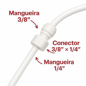 Transforme sua instalação de água em um processo simples e seguro com o nosso Kit Mangueira 3/8 1,5 m + Mangueira 1/4 1,5 m com Conector 3/81/4. Desenvolvido para sistemas Soft e qualquer equipamento que utilize mangueira de 3/8 reduzindo para 1/4, este kit oferece alta resistência, vedação perfeita e instalação sem complicação. Principais Benefícios Instalação rápida e prática: conecte sem precisar de ferramentas adicionais. Vedação confiável: encaixes com anel de borracha que impedem vazamentos. Material atóxico em polietileno PEBD : sem gosto, sem cheiro e sem risco à saúde. Alta durabilidade: resistente a pressões de até 15 kgf/cm. Compatibilidade ampla: ideal para Soft, Everest, IBBL, Electrolux, Purificadores e sistemas de osmose reversa. Especificações Técnicas Mangueira 3/8 9,5 mm - 1,5 m de comprimento Mangueira 1/4 6,35 mm - 1,5 m de comprimento Conector union 3/81/4 - engate rápido, plásticos de engenharia de alta resistência Pressão máxima de trabalho: até 15 kgf/cm Temperatura de operação: 4 C a 40 C Como Funciona Corte as mangueiras no tamanho desejado, mantendo pelo menos 5 cm de folga para o encaixe. Insira a extremidade da mangueira 3/8 no lado maior do conector até travar. Insira a mangueira 1/4 na outra face até ouvir o click de travamento. Abra o registro e verifique se não há vazamentos. Pronto Aplicações Recomendadas Purificadores e bebedouros residenciais Geladeiras Side by Side e frigobares com entrada de 1/4 Sistemas de osmose reversa de bancada ou embutidos Equipamentos Soft e outras marcas que utilizem mangueira 3/8 reduzindo para 1/4 Conteúdo da Embalagem 1 x Mangueira PEBD 3/8 - 1,5 m 1 x Mangueira PEBD 1/4 - 1,5 m 1 x Conector União 3/81/4 Kemflo Filtros - Qualidade que você confia. Aqui você encontra produtos testados, com instalação descomplicada e suporte de verdade. A gente não vende só filtro, a gente resolve problema. Kit mangueira 3/8 para 1/4 conectores redutores mangueira kit adaptador mangueira filtro mangueira polietileno 3/8 1/4 mangueira atóxica soft kit instalação purificador água conexão rápida 3/81/4 acessório filtro água kemflo mangueira redução 3/8 1/4 preparo peças para purificador doméstico chopeiras latina