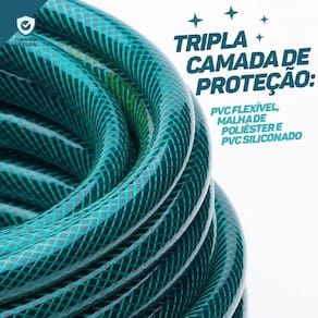 • 2ª Camada de Malha em Poliéster: fios em poliéster super-resistentes trançados e entrelaçados. Essa malha é responsável por dar melhor estrutura a mangueira, protegendo e aumentando sua durabilidade.