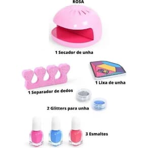 Faça você mesma e transforme suas unhas em verdadeiras obras de arte com o Kit Manicure Infantil Diamond Star da Bbr Toys! Este kit encantador é perfeito para as pequenas que adoram se divertir e criar estilos únicos. Com unhas decoradas e cheias de charme, a diversão está garantida. O kit inclui 1 secador de unhas, 3 esmaltes de glitter à base de água, 2 potes de glitter, 1 lixa de unha e 1 separador de dedos, tudo feito de plástico colorido. Certificado pelo IP-BRI-0203/2022-110, este produto é seguro e fácil de usar, alimentado por 2 pilhas AAA (1.5V). Não recomendado para crianças menores de 3 anos. Dimensões da embalagem: 25 x 28 x 8 cm, peso: 300g. Ideal para presentear e incentivar a criatividade das crianças!