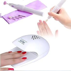 Características do Produto: Lixa Elétrica: Projetada para remover calosidades, modelar e dar brilho às unhas de forma eficiente. Secador de Unhas: Compacto e portátil, com carregamento 2 pilhas AA (não acompanha), perfeito para levar em viagens. Fácil de Usar: Pressione o botão de ligar/desligar para secar as unhas em minutos e obter um acabamento impecável. Kit Completo: Inclui uma variedade de acessórios para atender a todas as suas necessidades de manicure.