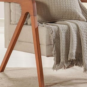 Kit Manta e Almofada Decorativa para Sofá Waffle Algodão 120x150cm Cashmere -