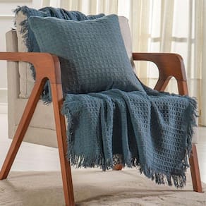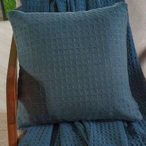 Kit Manta e Capa de Almofada Decorativa para Sofá Waffle 100% Algodão 120x150cm Azul Cobalt -