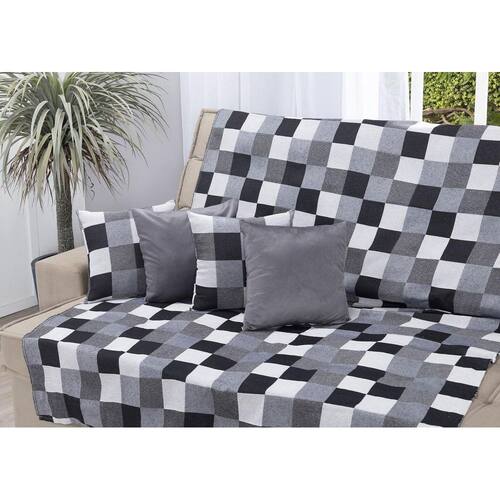 Kit Manta de Sofá 1,35 x 1,50 + 4 Capas de Almofada Jacquard e Suede Cor: Tabuleiro preto com cinza Os xales, ou mantas, são itens coringa na decoração. A grande variedade de cores, estampas e texturas te permite mudar a cara de qualquer ambiente de forma rápida e gastando pouco. Pode ser colocado em sofás, poltronas, cadeiras, dentro de cestos ou até como peseira pra compor a roupa de cama.