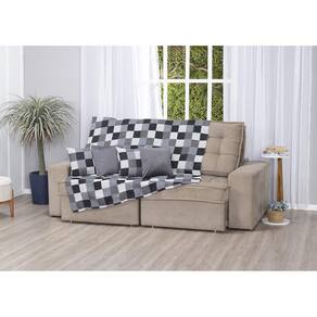 Contém na embalagem: 1 xale 1,35m comp. X 1,50m larg. 2 capas de almofada de jacquard 40cm x 40cm 2 capas de almofada de suede 40cm x 40cm