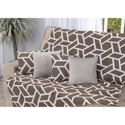 Kit Manta de Sofá 2,40 x 1,50 + 4 Capas de Almofada Jacquard e Suede Cor: Geométrico marrom com avelã Os xales, ou mantas, são itens coringa na decoração. A grande variedade de cores, estampas e texturas te permite mudar a cara de qualquer ambiente de forma rápida e gastando pouco. Pode ser colocado em sofás, poltronas, cadeiras, dentro de cestos ou até como peseira pra compor a roupa de cama.