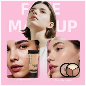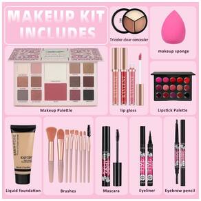 Kit Maquiagem Completo KAVCENT Paleta Sombras Batom Gloss Foundation Líquida Corretivo Máscara Delineador Pincéis para Teens e Mulheres