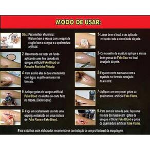 Esse kit foi desenvolvido para você, profissional ou iniciante. Com ele você poderá desenvolver maquiagens assustadoras, fraturas expostas, marcas de tiros, cicatrizes e tudo que sua imaginação mandar. Divirta-se e aterrorize. Ideal para maquiagem de caracterização, festas temáticas e cicatrizes em gel.