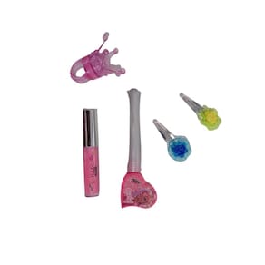 Itens inclusos: Anel Gloss, 4 Presilhas, 1 Pincel, 2 Esmaltes, 2 Batons, Paleta de Sombras, 1 Sombra Individual, Paleta de Gloss, 7 Diferentes Gloss.