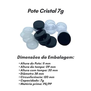 LOJA OFICIAL EMBANET. Na EMBANET você encontra as melhores embalagens fabricadas no Brasil com materiais de alta performance, durabilidade e ótimo acabamento, não tóxico e ecologicamente correto. Oferecendo um ótimo custo beneficio. - Pote liso facilitando aplicação de rotulo ou etiqueta. - Tampa com rosca vedando totalmente a embalagem. - Embalagem transparente facilita a identifica do seu conteúdo. - Material desenvolvido para cosméticos. - Não quebra fácil por se tratar de um material super resistente. - Fácil manuseio, embalagem super leve. - e embalado de forma segura, evitando danos. - Produto não testado em animais. - Produto 100% ecológico e reciclável. - Produto 100% brasileiro. - Compra 100% segura. Itens Inclusos: 10 unidades do pote 10 unidades da tampa 10 unidades de peneira Especificações do Pote: Altura total pote: 2 cm Altura da tampa: 0,9 cm Altura do pote: 1,1 cm Diâmetro: 3,8 cm Circunferência: 12 cm Capacidade: 7g Cremes / 3g Pós Enviamos os pedidos em até 24h úteis após aprovação da compra. Ideal para armazenar loções artesanais, sombra, pós, blush, protetor labial, corporal, esfoliante, protetor labial caseiro, hidratante, cremes, pomadas, bálsamos, amostras, testes, arte para unhas, iluminador, glitter, tintas, lantejoulas, cosméticos, maquiagens, lembrancinhas, , entre outros. Trabalhamos com diversos tipos de embalagens. Veja mais anúncios do vendedor.