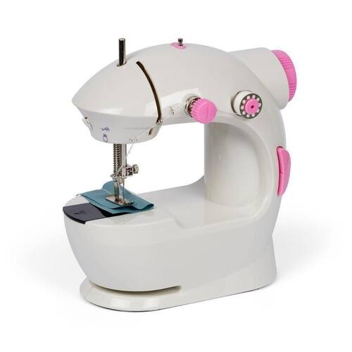 Máquina de costura portátil elétrica mecânica com 750 pontos por minuto, enchedor de bobina automático, retrocesso para acabamento e braço livre. Ideal para tecidos leves e uso doméstico.Funções