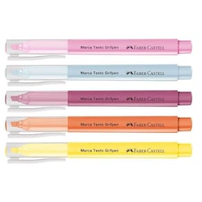 Com o Kit Marca Texto Grifpen com Cheirinho 10 Cores da Faber Castell seus textos ficarão destacados com cores vibrantes e com deliciosos aromas que tornam a experiência única e agradável. Com design ergonômico garante conforto durante o uso, e a ponta chanfrada permite traços precisos em diferentes espessuras, aproveite!
