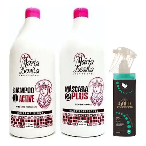 Maria Bonita Escova Progressiva reduz o frizz dos cabelos, alisa e promove brilho luminoso aos fios. O Tratamento Plus Equilibra o PH dos fios reconstruindo as fibras constituintes dos cabelos. Sua função consiste em devolver brilho e maciez aos fios, deixando-os fortes e om a cutícula alinhada.