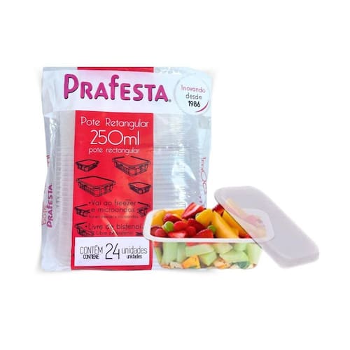 Pote Retangular 250ml tornando sua rotina mais ágil, aumentando a vida útil de alimentos.