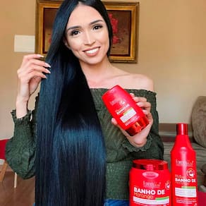 Cabelos totalmente recuperados e saudáveis, com fios leves, hidratados, macios e com a cor revitalizada.