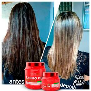 Cabelos totalmente recuperados e saudáveis, com fios leves, hidratados, macios e com a cor revitalizada.