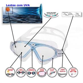 O Kit Máscara de Natação Gold Sports Confort HD foi desenvolvido para nadadores que buscam máximo conforto, vedação perfeita e visão nítida dentro da água. Produzida com silicone líquido de última geração, a máscara oferece um ajuste macio e anatômico que se adapta a diferentes formatos de rosto, evitando marcas ao redor dos olhos e permitindo longos períodos de uso com conforto. Suas lentes em policarbonato de alta definição (HD) proporcionam visão panorâmica de 180°, garantindo maior campo de visão e excelente nitidez debaixo d’água. Além disso, contam com dupla camada anti-fog (antiembaçante) e proteção UVA e UVB400, mantendo a visão sempre clara e protegida. O kit também acompanha touca em PU (tecido revestido com poliuretano) que protege os cabelos contra o cloro e reduz o atrito na água, além de protetores nasal e auricular em silicone, que proporcionam maior conforto e vedação durante o uso. Com design moderno e elegante, este kit é ideal para natação, treinos, lazer na piscina e atividades aquáticas, atendendo tanto iniciantes quanto nadadores experientes. Destaques do Produto • Silicone Líquido Ultra Confortável: vedação macia que se adapta ao rosto sem marcar a pele • Lentes HD em Policarbonato: visão nítida e ampla dentro da água • Visão Panorâmica 180°: maior campo de visão durante a natação • Dupla Camada Anti-Fog: evita o embaçamento das lentes • Proteção UVA e UVB400: proteção contra raios solares • Tiras em Silicone Ultra Soft: ajuste rápido e seguro • Kit Completo: máscara, touca, protetor nasal e protetor de ouvido Conteúdo do Kit 1 Máscara de Natação Gold Sports Confort HD 1 Touca de Natação em PU 1 Protetor Nasal 1 Par de Protetores Auriculares Especificações Técnicas Marca: Gold Sports Material das Lentes: Policarbonato de alta resistência Material da Vedação e Tiras: Silicone líquido ultra macio Material da Touca: PU (tecido revestido em poliuretano) Proteção: UVA / UVB400 Tecnologia: Anti-fog (antiembaçante) Campo de Visão: 180° panorâmico Informações Adicionais Tamanho: Adulto (pode ser utilizado por adolescentes) Faixa Etária: Adulto Dimensões da Máscara: 18 x 7 x 3 cm Garantia: 1 mês contra defeito de fabricação Marca: Não Informado