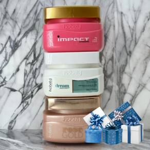 Máscara hobety impact morango 300g É a continuidade do tratamento de alto impacto, ideal para cabelos quimicamente tratados. Possui alto poder de hidratação e nutrição. Em alguns minutos devolve a emoliência, brilho e sedosidade aos cabelos, deixando uma irresistível fragrância. Modo de uso: aplicar o produto sobre os cabelos limpos e molhados, emulsionar uniformemente e enxaguar. ============================= A mascara dream Elaborado com a tecnologia exclusive chemical control ii para ser utilizado em cabelos pós-quimica, como a guanidina, sódio, amônia e aqueles que sofreram processos com escovas progressivas/alisamentos, proporcionando proteção aos fios e couro cabeludo, suavidade, hidratação, auxilio do equilíbrio da aleosidade e reposição da queratina perdida nas cerdas. Modo de usar aps utilizar o shampoo dream, sobre os cabelos molhadas, aplicar o creme dream em todo comprimento das fios, deixe agir por cinco minutos. Enxaguar. Para dar continuidade ao processo, aplicar o leave-in dream. ========================================= Máscara de tratamento rose gold 300gr Máscara de tratamento para os cabelos fragilizados e quebradiços que precisam de crescimento e fortalecimento. Auxilia a saúde e a hidratação do couro cabeludo, estimulando a produção da queratina, para os fios já existentes, deixando-os macios, brilhantes e saudáveis. Modo de usar: após utilizar o shampoo da linha hobety , com os cabelos úmidos enluvar das raízes as pontas, aguardar 5 minutos e enxaguar com abundancia. Marca: Não Informado