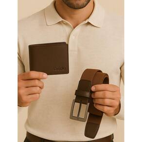 Kit Masculino Fasolo Carteira Fina E Cinto Couro Cafe 85