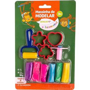 6 massas de modelar nas cores: roxo, rosa, vermelho, azul, verde e amarelo com 5 peças: 1 rolinho, 1 seringa e 3 moldes no formato coração, estrela e árvore. Homologação Inmetro: IP-BRI-0100/2020 Marca: Não Informado