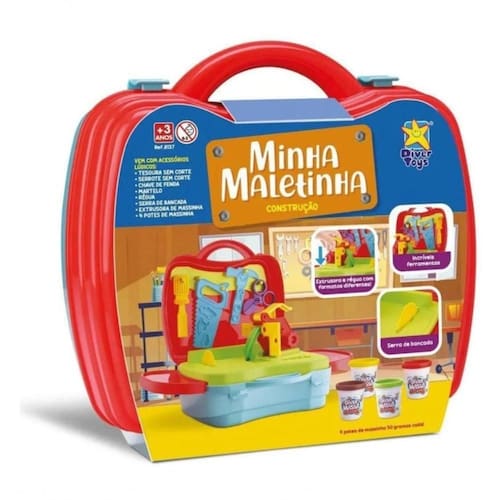 Kit Massinha Para Modelar Minha Maletinha - Construção C/ Ferramentas - Divertoys Uma super Maletinha que vira uma linda bancada de trabalho com ferramentas para construir e soltar sua imaginação com massinhas de modelar coloridas. As crianças vão amar brincar com essa maleta. Vem com vários acessórios lúdicos. Código: 079908 Dimensões aprox. da embalagem em cm: 12x24x25 Peso liq. Aproximado do produto na embalagem: 795g Referência do Modelo: 8137 Certificado Inmetro: Sim Conteúdo da Embalagem: 4 Potes de massinha,1 tesoura sem corte,1 serrote sem corte,1 chave de fenda,1 martelo,1 régua,1 serra de bancada,1 estrusora de massinha e 1 maleta. Composição/material: Plástico e massinha Idade recomendada: a partir de 3 anos Garantia: 90 dias contra defeitos de fabricação pelo fabricante Imagens meramente ilustrativas. As cores e tonalidades podem variar. Gênero - Meninos Idade - 3 anos 4 anos 5 anos 6 anos 7 anos Tipo - Massinhas de Modelar