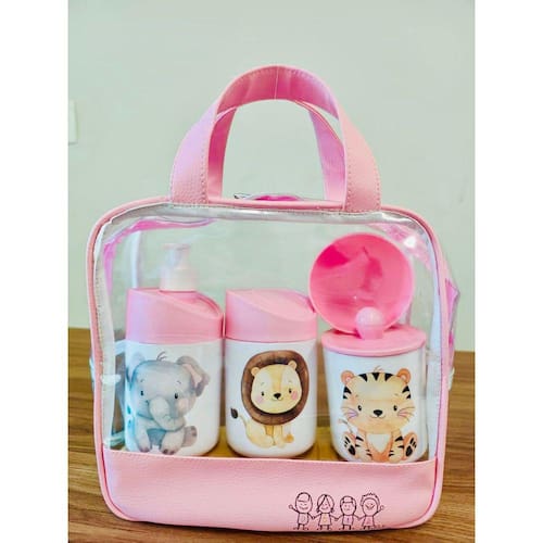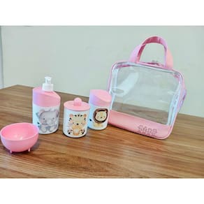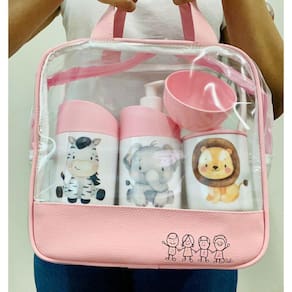 Kit Maternidade Baby Safari Acompanha: - 1 Porta Sabonete Líquido - 1 Porta Algodão - 1 Porta Cotonete - 1 Molheira MEDIDA DOS POTES: Porta algodão/cotonete: 8x10,5 cm Porta sabonete líquido: 12x21 cm Molheira: 8x5 cm TAMANHO DA BOLSA: - Diâmetro: 25x25cm Marca: Dóia Kids