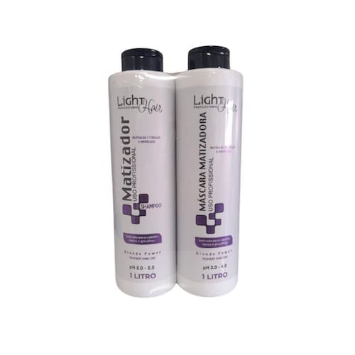 O Kit Light Hair Blonde Power Shampoo e Máscara Matizadora 1L é ideal para cuidar dos cabelos loiros, grisalhos e com mechas. Composto por uma Máscara Matizadora e um Shampoo Matizador, esse kit proporciona uma recuperação rápida e intensa dos fios agredidos por processos de descoloração. A Máscara Matizadora, com sua fórmula especial, neutraliza os tons dourados ou amarelados que podem se formar nos cabelos loiros ou grisalhos ao longo do tempo. Ela age nas cutículas dos fios, realçando a cor e proporcionando um tom mais luminoso e platinado. Basta aplicar a máscara após lavar os cabelos com o Shampoo Matizador, deixar agir por alguns minutos e enxaguar. Já o Shampoo Matizador possui ativos que recuperam internamente os fios agredidos por descolorantes, proporcionando resistência, nutrição e emoliência aos cabelos. Além disso, ele matiza os cabelos loiros, grisalhos e neutraliza os cabelos alaranjados. Indicado para cabelos loiros com processo de descoloração, mechas e pintura dos fios, o Kit Light Hair Blonde Power Shampoo e Máscara Matizadora 1L garante resultados incríveis. Os cabelos ficam mais bonitos, saudáveis e com uma cor radiante. Composição: - Aqua - Disodium edta - Acid violet 43 - Cetearyl alcohol - Ceteareth-20 - Butyrospermum parkii shea butter fruit - Mineral oil - Cetrimonium chloride - Cyclopentasiloxane - Dimethicone - Peg-90m - Polyquaternium-10 - Methylisothiazolinone - Methylchloroisothiazolinone - Parfum - Hexyl cinnamal - Limonene - Linalool - Mica - Titanium dioxide. O Kit Light Hair Blonde Power Shampoo e Máscara Matizadora 1L é um produto de e seu uso é externo. Mantenha o produto em local fresco e ao abrigo da luz e do calor. Mantenha fora do alcance de crianças e animais domésticos. Em caso de irritação, suspenda o uso e procure um médico. Evite o contato com os olhos e mucosas. Em caso de contato, lave com água em abundância e procure um médico. Não ingerir. Marca: Não Informado