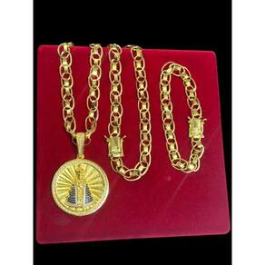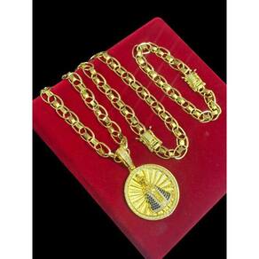 Kit Matrix 10mm + Pingente Santa Raiada Banhado a Ouro 18k Detalhes do Produto: Material: ligas metálicas de alta qualidade, especialmente tratadas para fixação e absorção do ouro, com acabamento em verniz protetor. Aparência: visual idêntico ao ouro maciço. Produção: artesanal, com atenção meticulosa aos detalhes. Banho: 10 camadas espessas de ouro 18k, finalizadas com verniz antialérgico . Elos: soldados varia conforme o modelo . Pedras: zircônias brilhantes cravejadas quando aplicável . Tamanhos Disponíveis: Cordões Masculinos: 70cm padrão e 60cm sob consulta/Pedido Via Chat . Cordões Femininos: 50cm padrão e 45cm sob consulta/Pedido Via Chat . Pulseiras: 21cm padrão ; tamanhos de 18cm a 23cm sob consulta/Pedido Via Chat. Pingentes: conforme imagens; consulte para mais detalhes via chat. Espessuras Recomendadas para Cordões / Pingentes: P: 1mm a 4mm M: 4mm a 8mm G: 6mm a 13mm Gg: 12mm a 18mm Incluso na Compra: Saquinho de organza para armazenamento seguro. Caixa elegante, perfeita para presente. Cupom de desconto para a próxima compra. Flyer com outros produtos da coleção. Carta de agradecimento personalizada. Adesivo da marca ToJoia18k. Informações Adicionais: : 6 meses termos acompanham o produto . Devolução: 7 dias para devolução sem questionamentos. Envio: despacho em até 24 horas úteis após confirmação do pagamento. Cuidados com a Peça: Evite contato com produtos químicos; aguarde o perfume secar antes de usar. Evite contato com shampoo, condicionadores e suor excessivo. Armazene em local seco, preferencialmente no saquinho de organza fornecido. Uso no mar e piscina é permitido; lave com água corrente e sabão neutro após. Por que Escolher a ToJoia18k Semi-joias luxuosas que combinam estilo, qualidade e sofisticação. Banho espesso de ouro 18k, garantindo brilho duradouro e acabamento impecável. Design exclusivo e produção artesanal, perfeitos para qualquer ocasião. Materiais premium que asseguram durabilidade. Ao escolher uma semi-joia ToJoia18k, você investe em qualidade, elegância e uma experiência única. Aguardamos sua compra Observação: pode ocorrer variação no fecho raramente . Imagens reais, sem edição. Qualquer dúvida, estamos à disposição para esclarecimentos. Marca: Não Informado