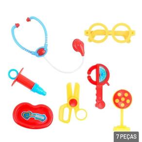 KIT Médico Infantil 07 Peças Mini Doutor Co O Kit Médico Infantil é uma divertida e educativa maleta de brinquedo, ideal para crianças que desejam explorar o mundo da medicina de maneira lúdica e segura. Com design colorido e atraente, este kit permite que os pequenos se sintam como verdadeiros médicos, estimulando a imaginação, a criatividade e o desenvolvimento de habilidades motoras. Perfeito para brincar de faz de conta, além de ser uma ótima maneira de familiarizar a criança com o ambiente médico, tornando-o menos assustador.\nAlém de ser um brinquedo divertido, o Kit Médico Infantil Mini Doutor Color também serve como uma ferramenta educativa, permitindo que a criança aprenda sobre o corpo humano, cuidados com a saúde e a importância dos profissionais médicos. Perfeito para presentear, é uma excelente escolha para estimular o faz de conta e a socialização entre amigos e familiares.\nDisponível em cores diversas.\nEspecificações:\nMarca : MERCOSUR\nTipo de material : Plástico\nCores ou Estampa : Color\nDimensões do Produto : 16 X 27 X 8,5 CM\nDimensões da Embalagem : 18 X 8 X 27,5 CM\nPeso Bruto (Gramas) : 0.262 Marca: Não Informado