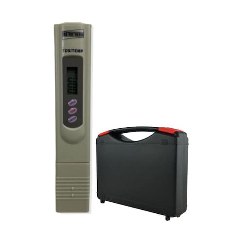 KIT MEDIDOR DE DUREZA D´AGUA PARA A MEDIÇÃO DE TDS, TEMPERATURA E CONDUTIVIDADE ELÉTRICA (EC) TIPO CANETA MOD. TDS-110 + MALETA PARA TRANSPORTE MOD. MA-200 DESCRIÇÃO: Medidor 3 em 1 tipo caneta, realiza facilmente medições de dureza da água (TDS) em PPM, condutividade elétrica em ?S e temperatura ambiente, em °C e °F DESTAQUES: Leve, portátil, construído em plástico Abs. O medidor 3 em 1 ajuda no controle da água de espécies aquáticas APLICAÇÕES: Hidropônia, aquicultura, cultivo urbano, produção e o consumo de água pura, piscinas, água de poço, laboratório e processamento de alimentos. ESPECIFICAÇÕES TÉCNICAS: Faixa de medição 0 a 10.000 ppm Resolução: 1ppm até 999 ppm / 10 ppm > 1000 ppm Precisão: ± 2% do fundo de escala Faixa de medição de condutividade elétrica 0 a 9990 ?S Resolução: 1 ?S Precisão: ± 2% do fundo de escala Faixa de medição de temperatura 0 °C a 50 °C Resolução: 0,1 °C Precisão ± 2 °C Função Hold congela a medição no display do instrumento. Ponto de calibração ajustável Temperatura de operação: 0 °C a 50 °C Umidade de operação: <85% UR Alimentação: 2 baterias mod. LR44 de 1.5V Peso: 76g Dimensões: 155 x 31 x 23 mm (LxAxP) ITENS FORNECIDOS: 1 - Medidor Dureza D´Água TDS-100 2 - Baterias 1,5V mod. LR44 1 - Estojo para transporte com clipe de cinto 1 - Maleta para transporte mod. ma-200