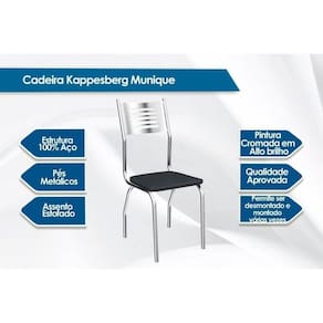 Cadeira Sala de Jantar Munique 4C047 Kit 4 Un Cromado/Courano Preto - Kappesberg