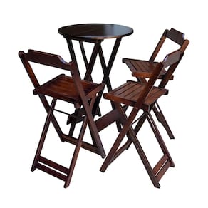 Kit Mesa Bistrô Dobrável em Madeira Maciça com 3 Banquetas Altas - Imbuia - Marrom
