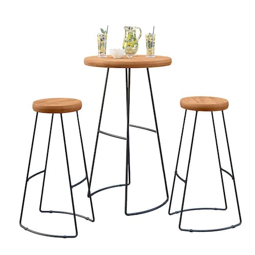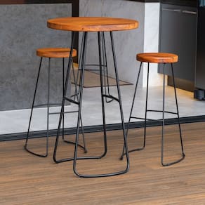 A base metálica confere estabilidade ao conjunto, adicionando um toque de estilo industrial à decoração. As banquetas altas oferecem assentos confortáveis e ergonômicos, tornando-as ideais para encontros informais em cozinhas, bares ou áreas de convívio. O design compacto do conjunto é perfeito para otimizar espaços sem sacrificar a estética.