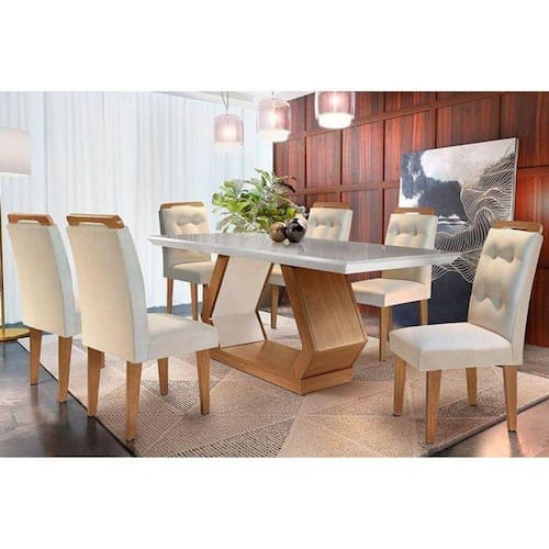 Sala de Jantar Completa Alvorada c/ Tampo Madeirado Canto Reto 180cm + 6 Cadeiras Imperatriz Imbuia/Veludo Creme - Rufato Abaixo segue os produtos do KIT: Sala de Jantar Completa Alvorada c/ Tampo Madeirado Canto Reto 180cm + 6 Cadeiras Imperatriz Imbuia/Veludo Creme - Rufato Mesa de Sala Jantar Alvorada + Tampo Madeirado Reto 180x90cm Imbuia/Off White - Rufato