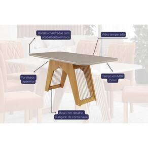 Conjunto: Mesa Sala Jantar Carol C/ Tampo Madeirado C/ Vidro 180cm + 6 Cadeiras Maia Nature/off White/gengibre - Cimol