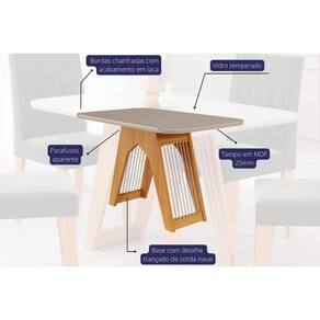 Kit Mesa Carol C- Tampo Vidro 130cm + 4 Cadeiras Nature Off White Madeira Linho Bege