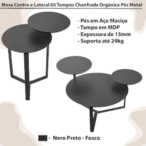 Mesa Centro 03 Tampos Chanfrada Pe Metal PR 28021