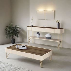 Eleve o estilo da sua casa com o Kit Mesa de Centro e Aparador Miami Orgânica! Com design sofisticado e formas orgânicas, este conjunto une elegância e funcionalidade para deixar seu ambiente ainda mais aconchegante e moderno.