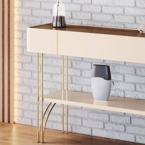 Observações: Requinte e sofisticação traduzidos em peças contemporâneas que enaltecem as formas orgânicas dos cantos arredondados; Aparador com prateleira inferior de 25mm ideal para compor a decoração ou ser utilizado como divisor de ambientes; Laterais com filetes decorativos; Pés de aço maciço 3/8 com acabamento em tom dourado; Produzidos em MDP e MDF de 15mm;