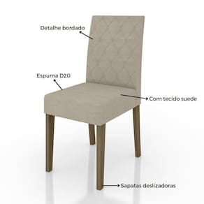Marca: Poliman Móveis | Modelo: Mesa Helo s/ Vidro 120x90 Cadeira Jade | Altura: 96 cm | Largura: 120 cm | Comnto: 90 cm | Altura Embalagem: 76,4 | Largura Embalagem: 92,4 | Comnto Embalagem: 122,4 | Peso: 71,2 kg | Peso Embalado: 71,2 | Material: cadeira (MDF de 25mm, encosto em MDF de 60mm, espuma D20 revestido com tecido suede bordado), mesa (MDP de 25 mm) | Quantidade de Lugares: 4 | Descrição do Tamanho: 96 x 120 x 90 cm | Garantia em Meses: 03 meses de garantia para defeitos de fabricação | Precisa de montagem?: Sim | Estado de Origem: SP | Código da Homologação ANATEL: Não se aplica | Quantidade de caixas de embalagem: 4 | Quantidade de cadeiras: 4 | Altura da mesa: 80 cm | Desenho do tecido das cadeiras: N/A | Condição do item: | Estilo: Moderno | Altura das cadeiras: 96 cm | Materiais da mesa: MDP de 25 mm | Largura da mesa: 120 cm | Forma da mesa: Retangular | Comnto máximo da mesa: 90 cm | É kit: Sim | Incluí estofamento: Sim | Largura das cadeiras: 41 cm | É mesa extensível: Não | Fonte do produto: Loja DoceLar | Materiais das cadeiras: MDF de 25mm, encosto em MDF de 60mm, espuma D20 revestido com tecido suede bordado | Comnto mínimo da mesa: 120 cm | Fabricante: Poliman Móveis | Profunidade das cadeiras: 62 cm Cor: Carvalho/Off White/Fendi