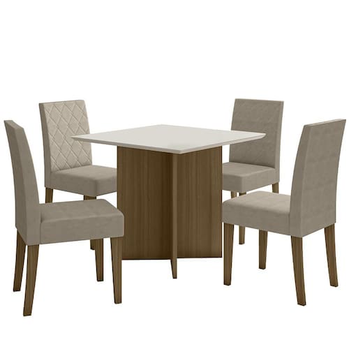 Apresentamos a você a nossa mesa de jantar com quatro cadeiras, perfeita para criar um ambiente elegante e funcional em sua casa. Com um design moderno que se adapta a qualquer estilo de decoração. Aproveite momentos especiais com sua família e amigos ao redor dessa mesa de jantar versátil e sofisticada.