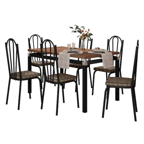 Seja para um jantar em família, um encontro com amigos ou uma ocasião especial, o Kit Mesa de Jantar Marva 136cm com 06 Cadeiras de Ferro é a solução ideal para qualquer evento.