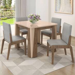 Com tampo em MDF e vidro, design moderno e cadeiras confortáveis revestidas em linho, ele une elegância e durabilidade.