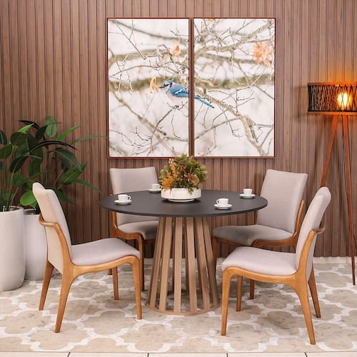 O Conjunto Mesa de Jantar Redonda Gabi 120cm com 4 Cadeiras Estofada em Madeira Garbo é uma ótima escolha para fazer parte da sua sala de jantar, cozinha ou até mesmo em seu comércio. Seu design ultrapassou todos os parâmetros de perfeição! Sua cadeira traz um toque de modernidade para a decoração de seu ambiente.