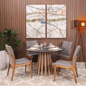 Conjunto Mesa de Jantar Redonda Gabi 120cm com 4 Cadeiras Estofada em Madeira Garbo