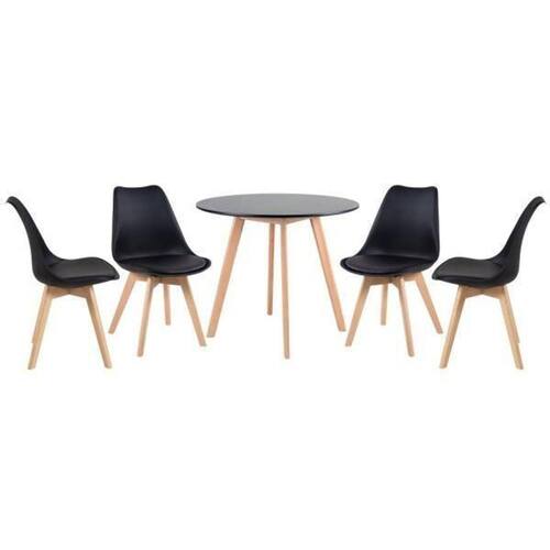 Kit - mesa de jantar redonda 90 cm preto + 4 cadeiras estofa Cor preto Largura 90 cm Modelo leda Formato redondo Ambiente principal sala de jantar Quantidade de lugares 04 Cor predominante preto Quantidade de cadeiras 4 Volume 2 Composição polipropileno Cor preto Cor da base madeira Cor da estrutura madeira Cor do assento preto Cor do produto preto Cadeira leda: material do encosto: polipropileno - material do assento: couro pu - material dos pés: madeira natural - altura do encosto: 82 cm - altura do assento: 44 cm - largura do assento: 48 cm - profundidade do assento: 43 cm - distância entre os pés: 42 cm - peso suportado: 130 kg. Mesa redonda leda: material do tampo: mdf laqueado laca fosca - material da base: madeira natural - altura: 70 cm - diâmetro do tampo: 90 cm - : 3 meses. Marca: Não Informado